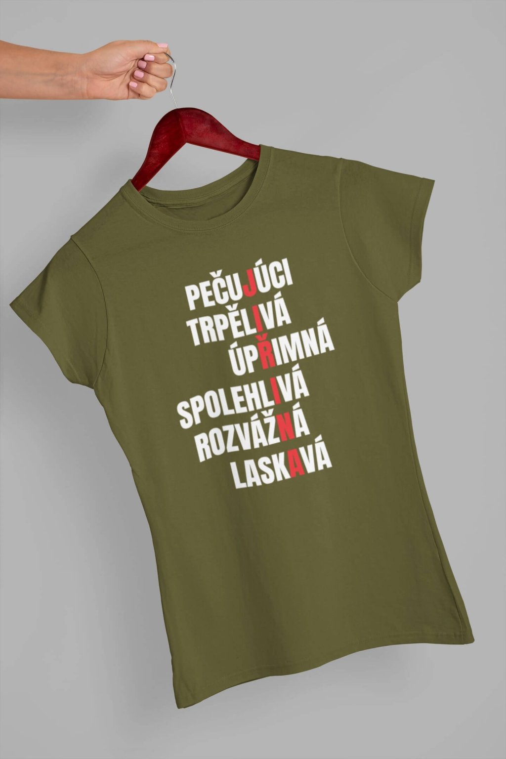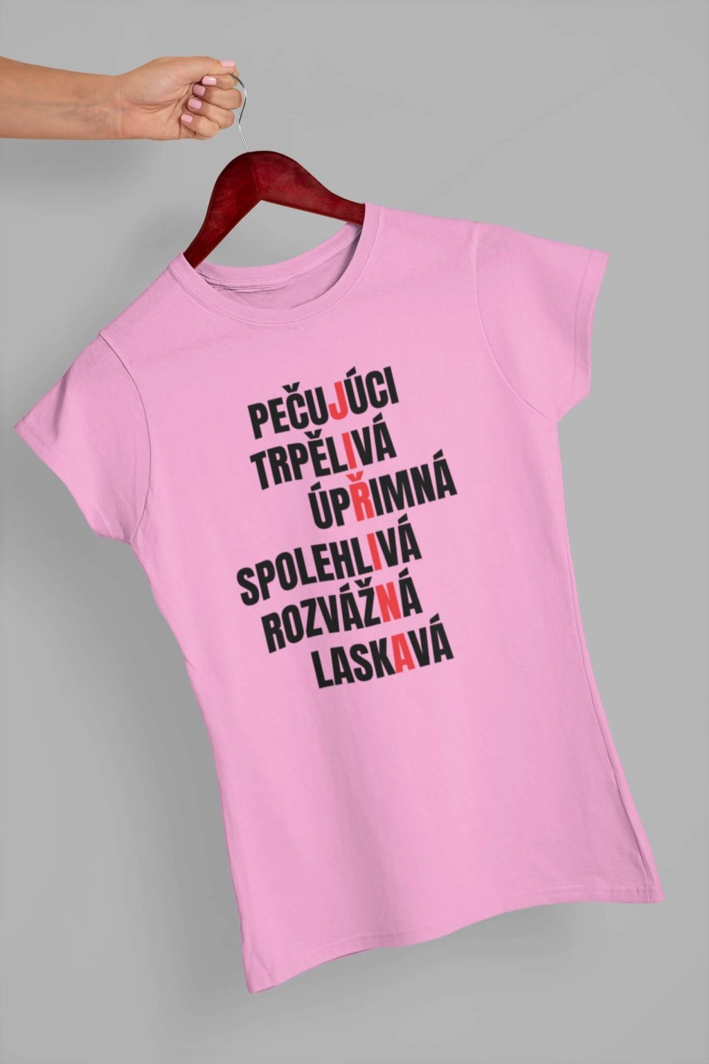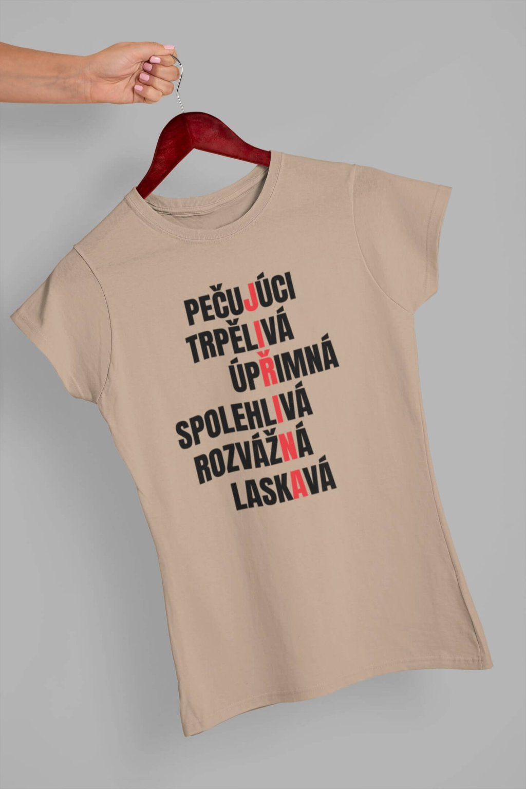 Dámské bavlněné triko s krátkým rukávem vhodné jako dárek pro každou Jiřinu k jejich svátku.