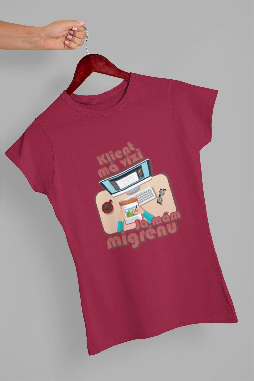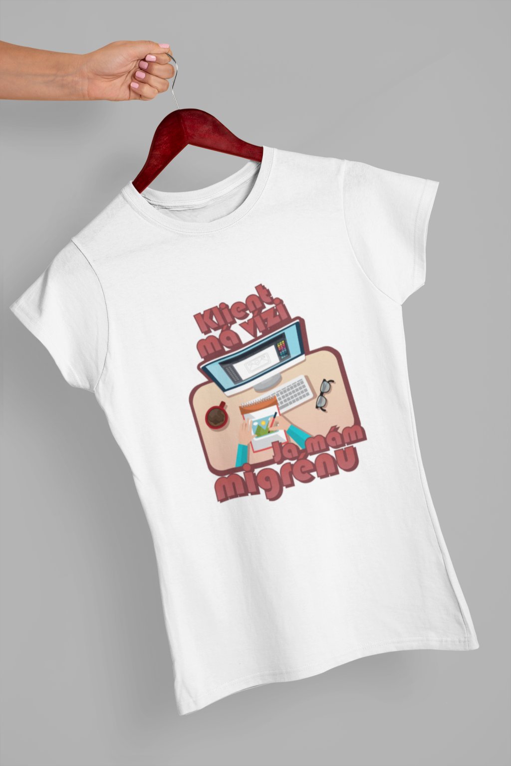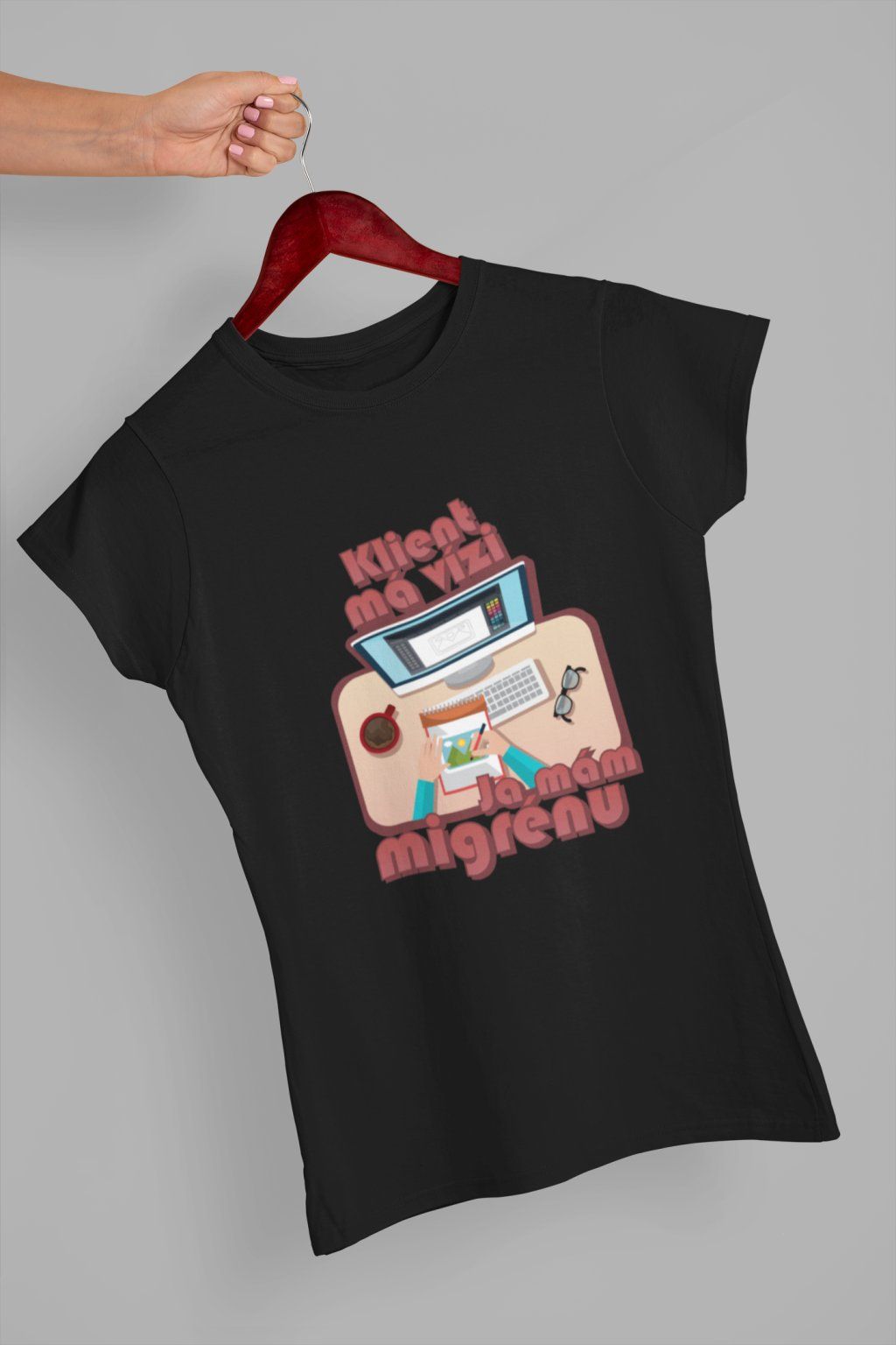 Vtipné triko pro každéou grafičku! Originální potisk s nápisem "Klient má vizi, já mám migrénu.."
