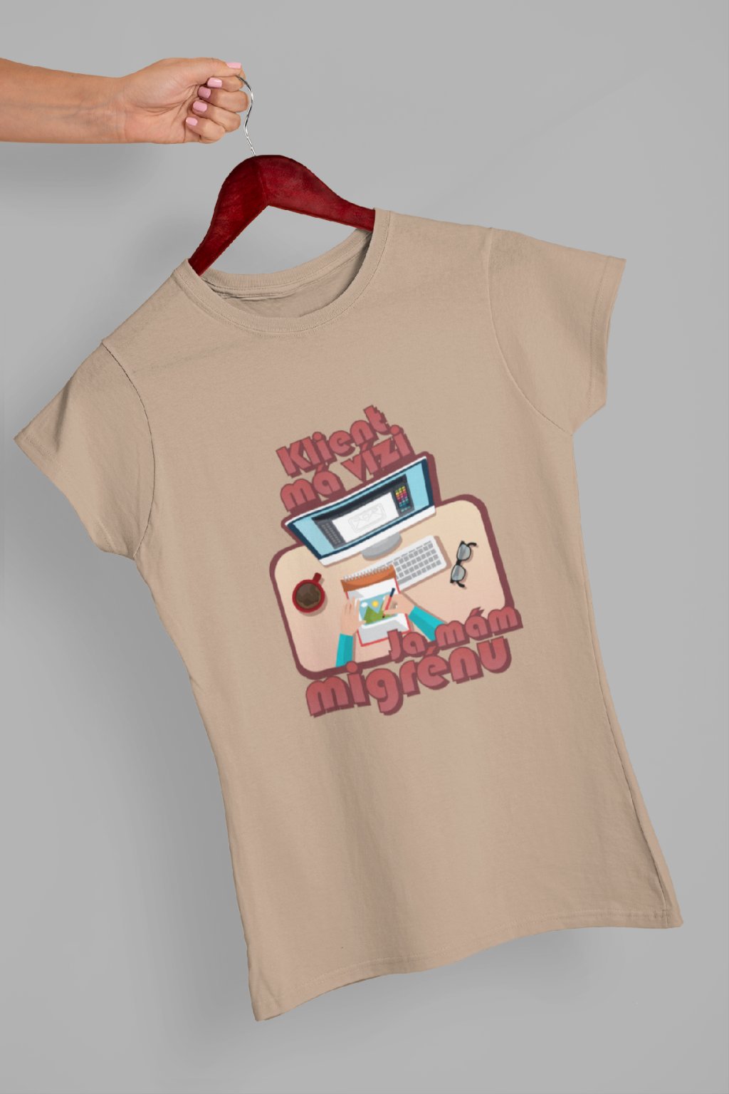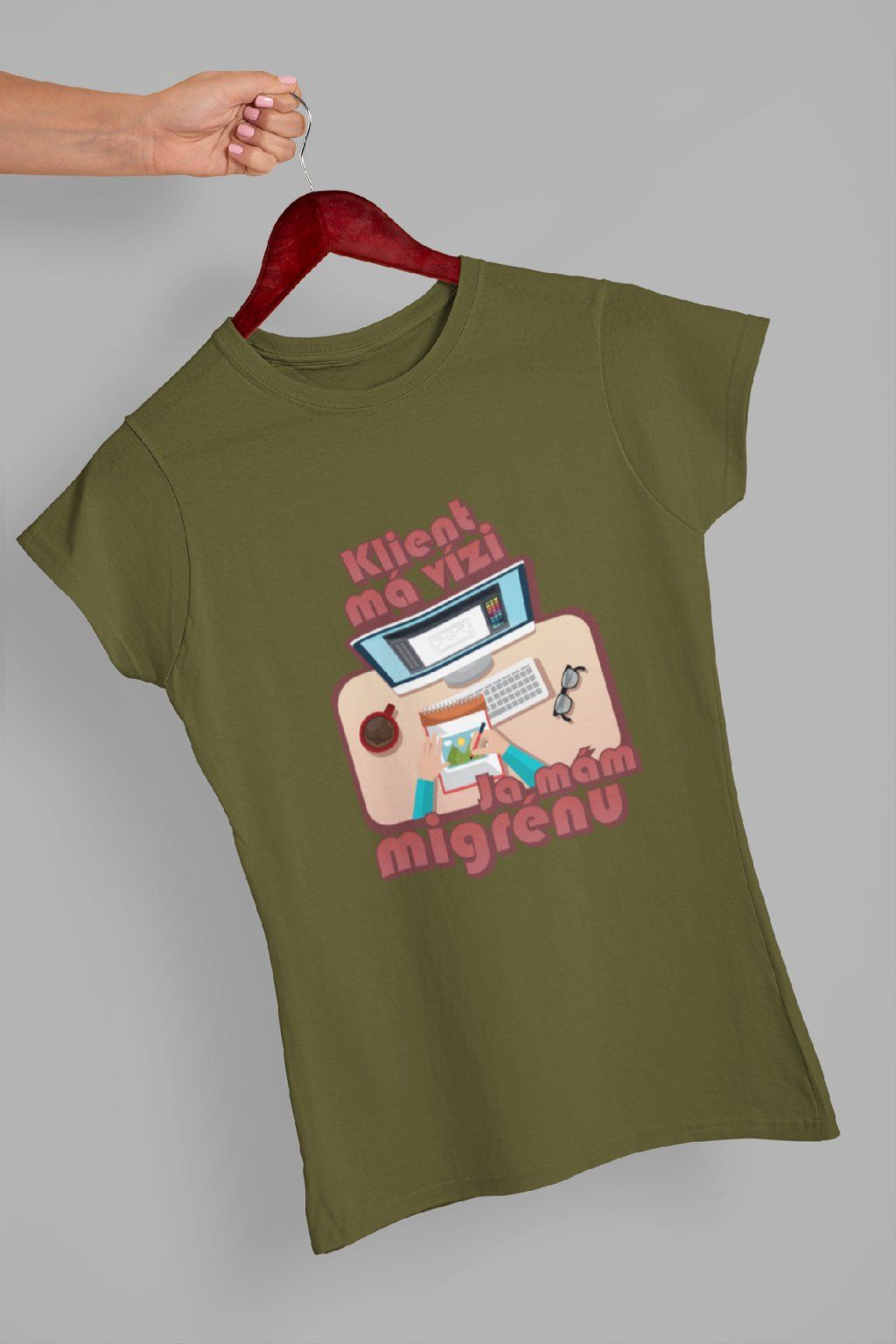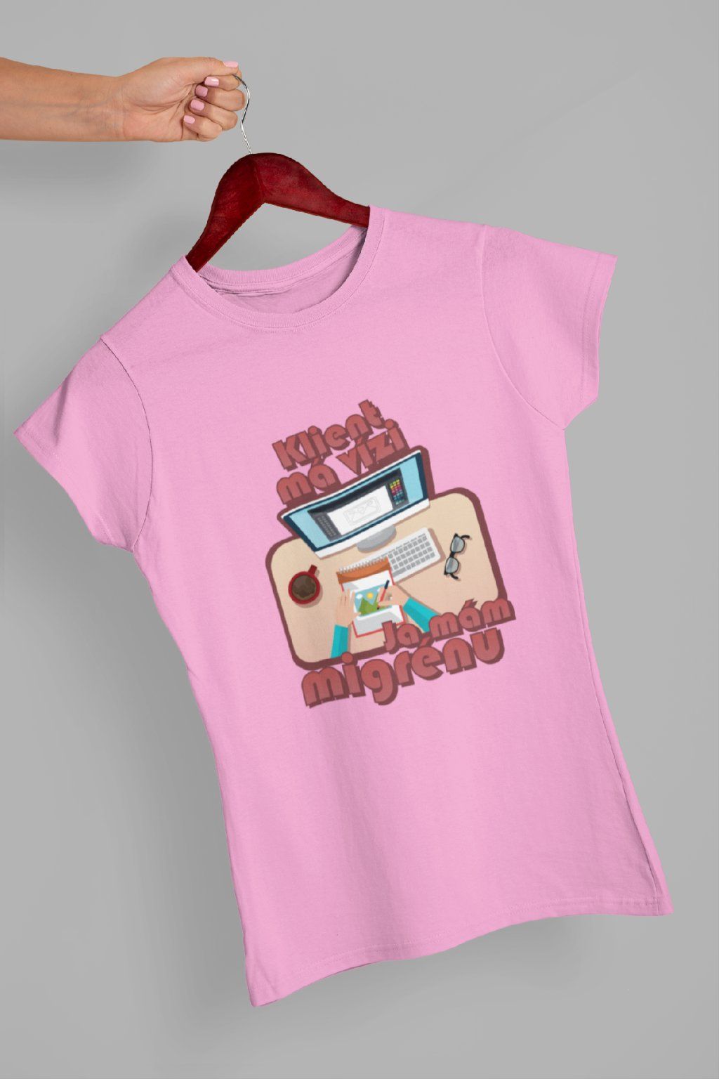 Vtipné triko pro každéou grafičku! Originální potisk s nápisem "Klient má vizi, já mám migrénu.."