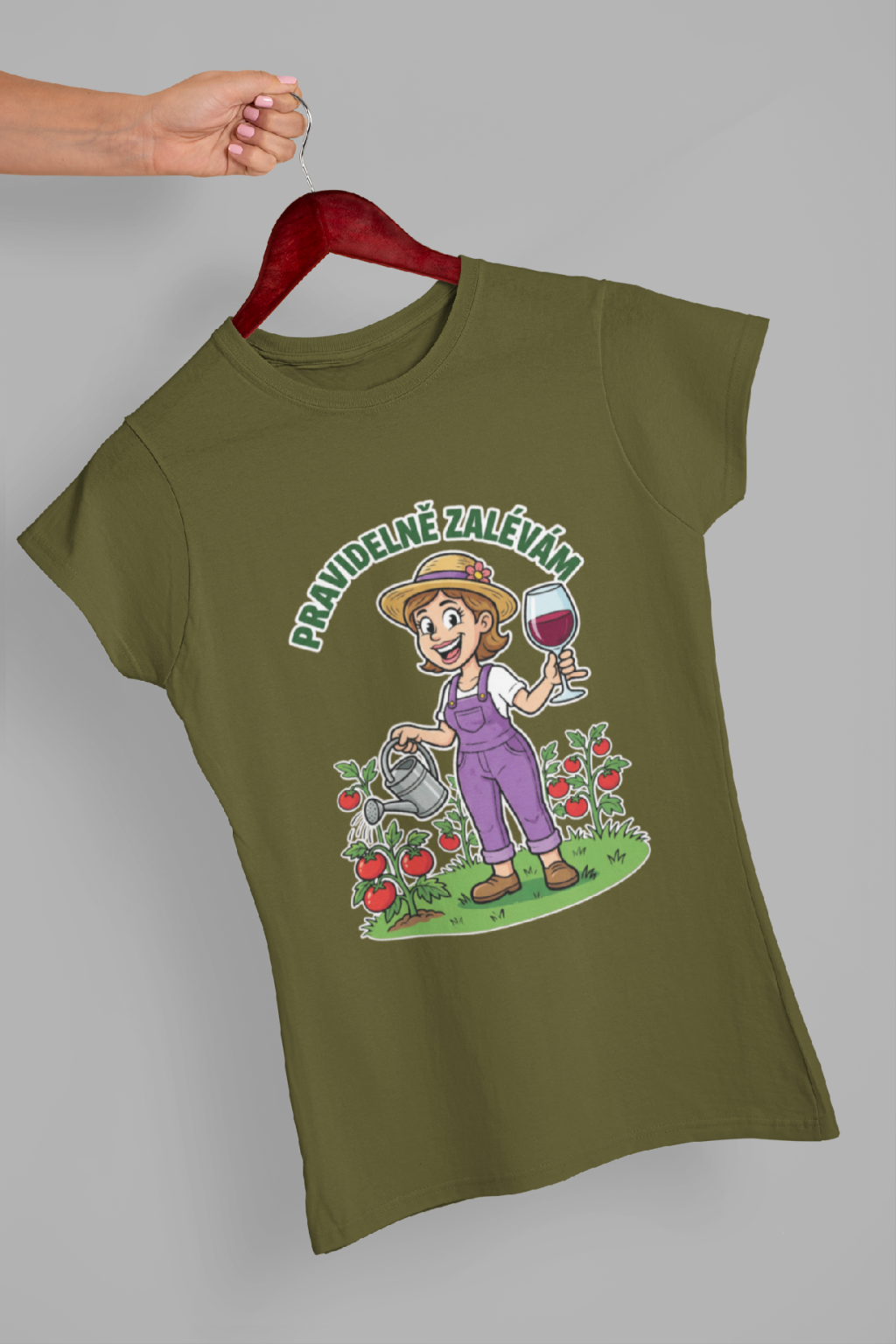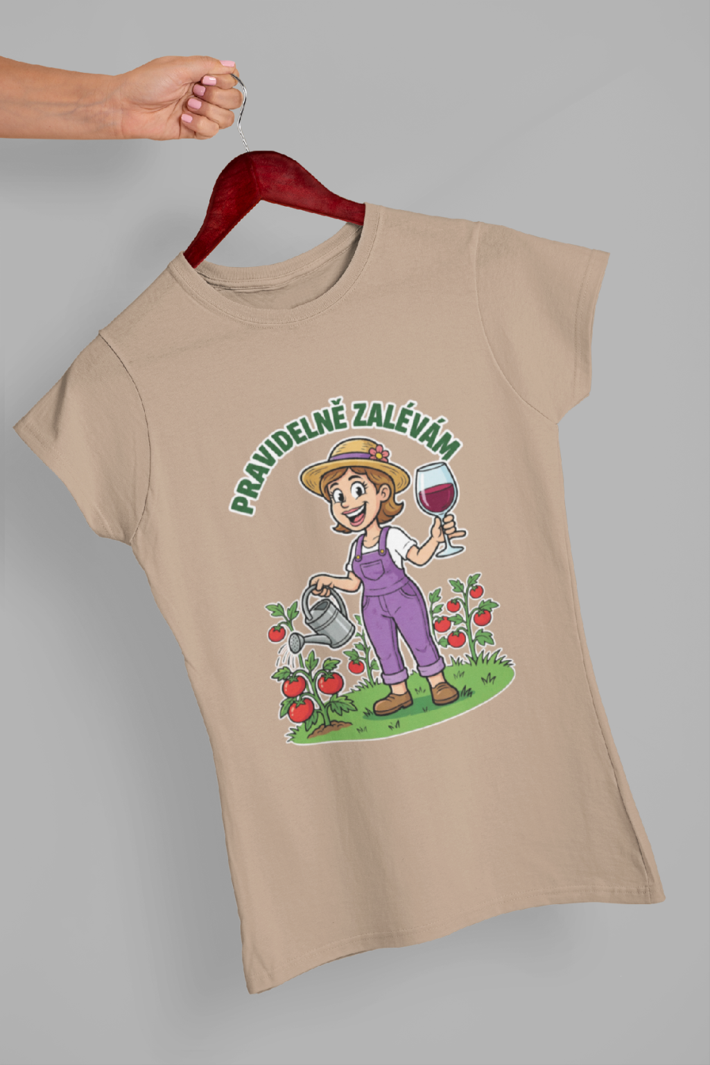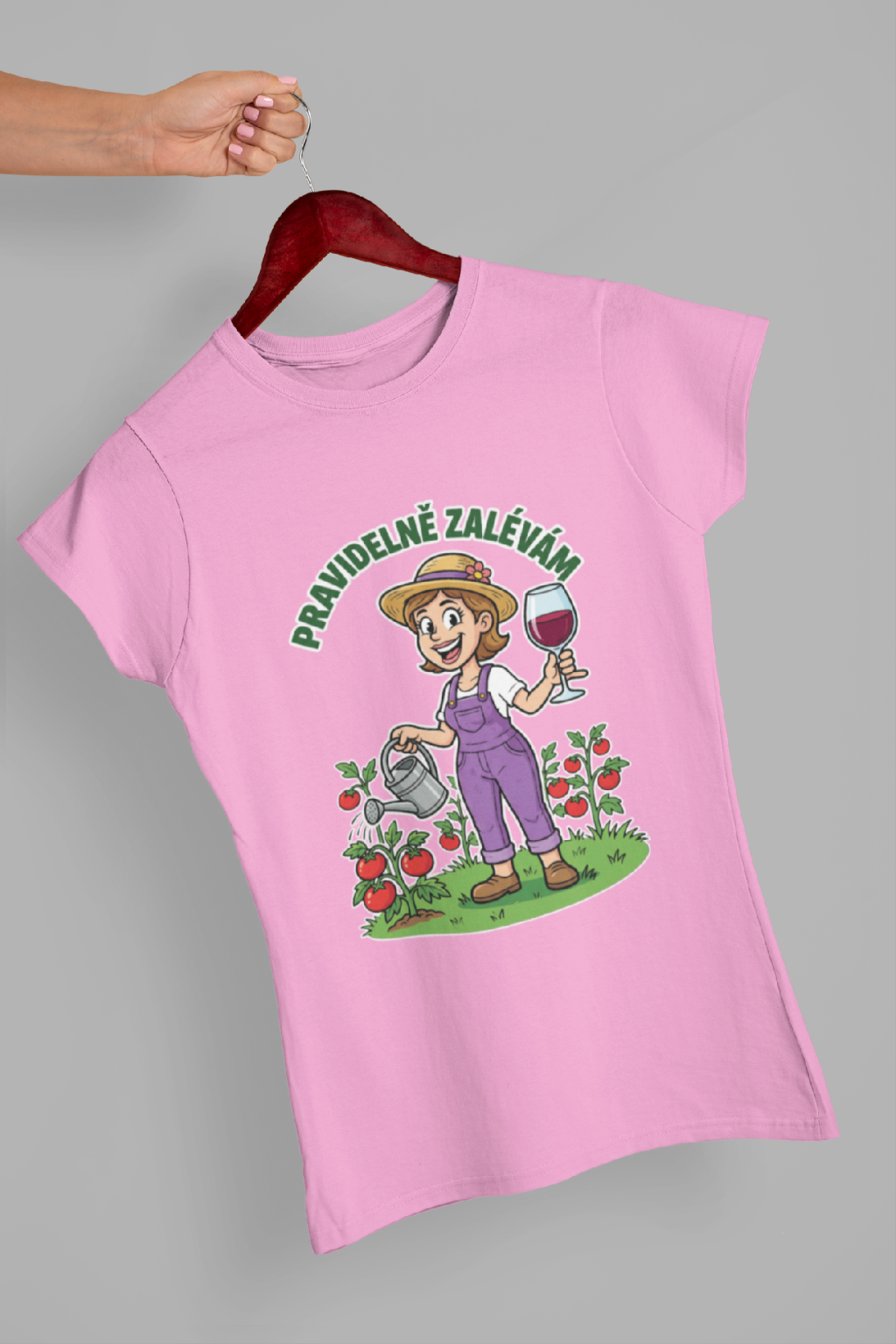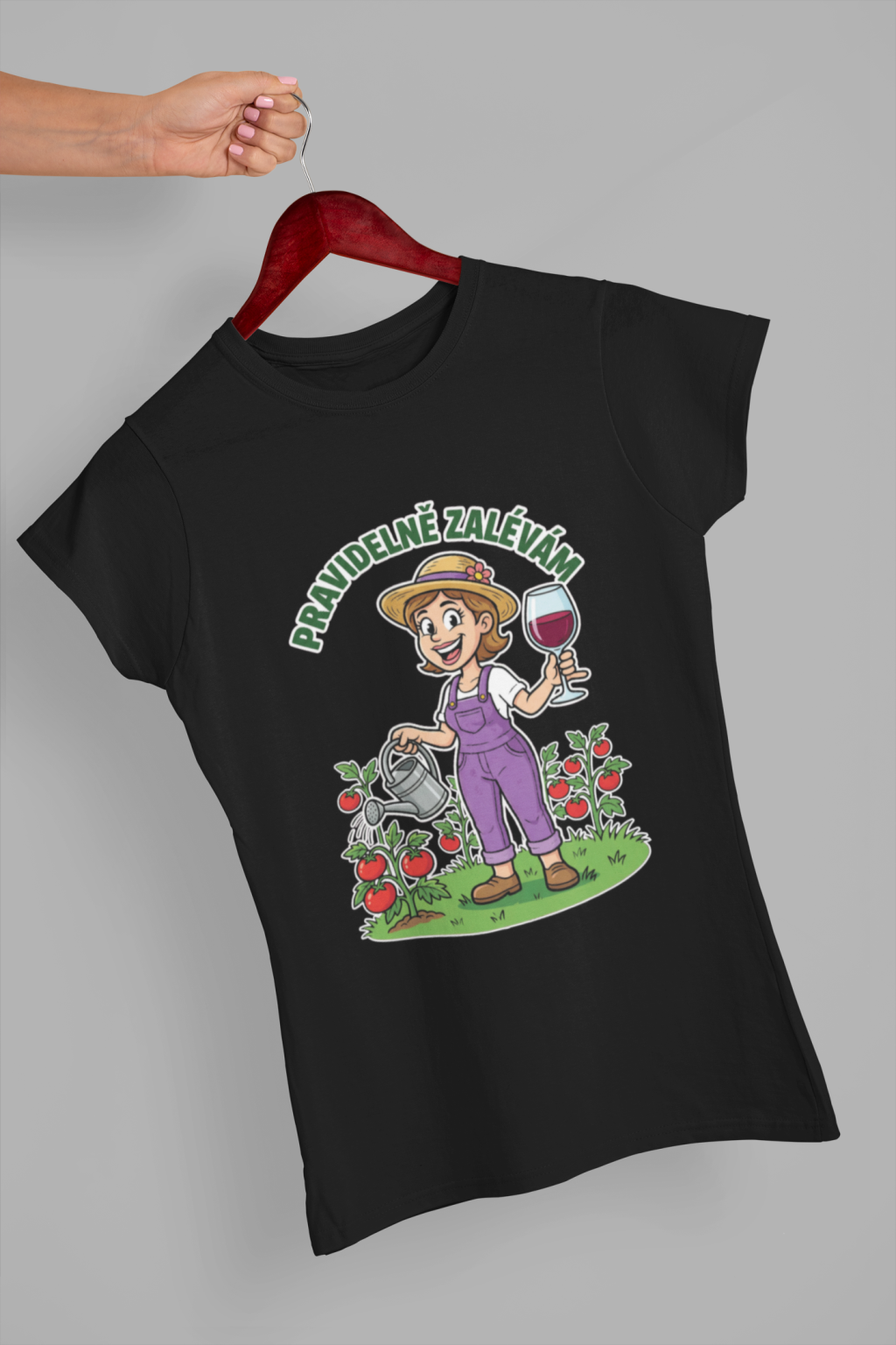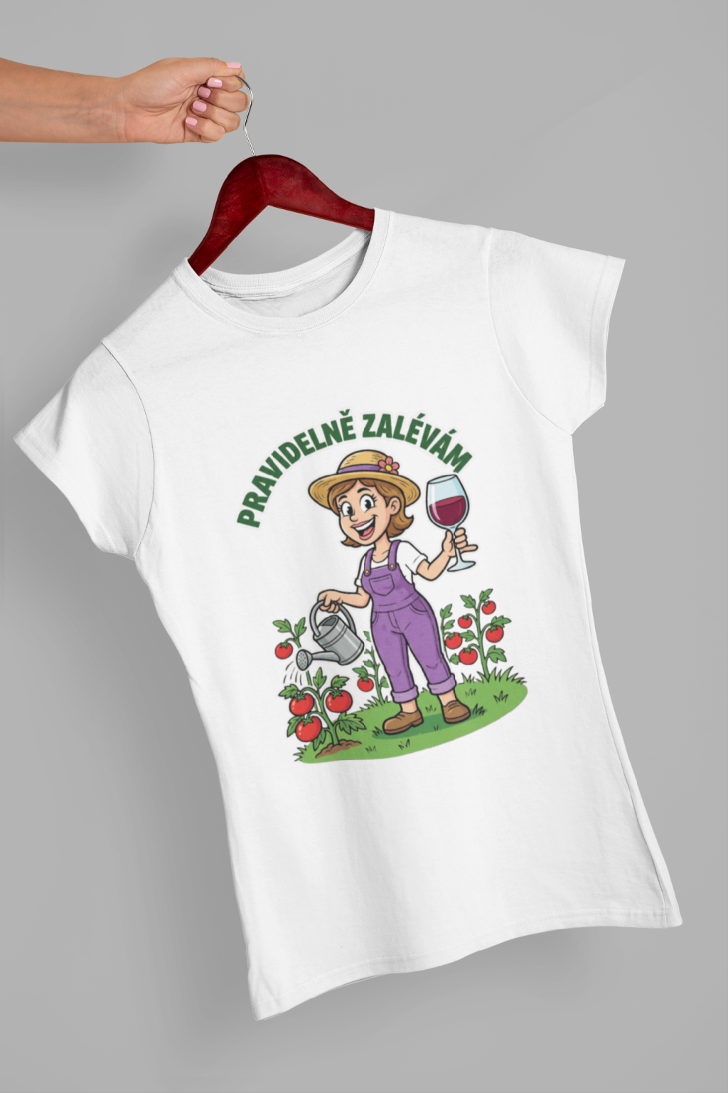 Vtipné dámské triko pro každou zahradnici! Originální potisk s nápisem "Pravidelně polévám."