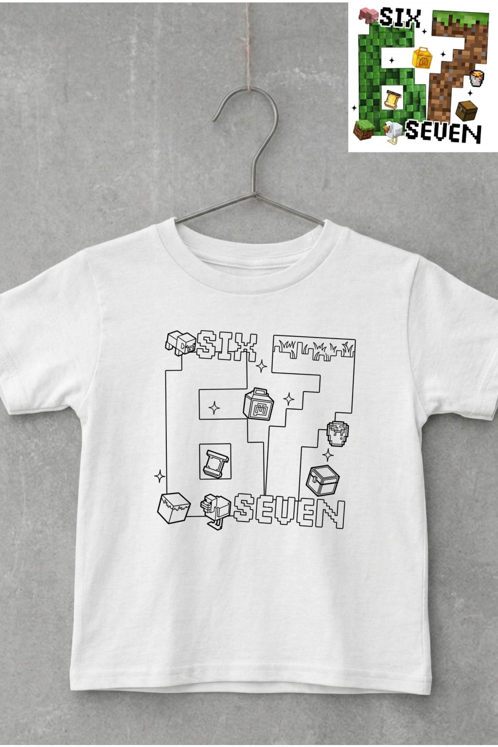 Dětské bavlněné tričko s krátkým rukávem, na kterém je motiv Six seven, který si můžete vybarvit. Rozvíjejte kreativitu a hravost svých ratolestí zajímavým způsobem.