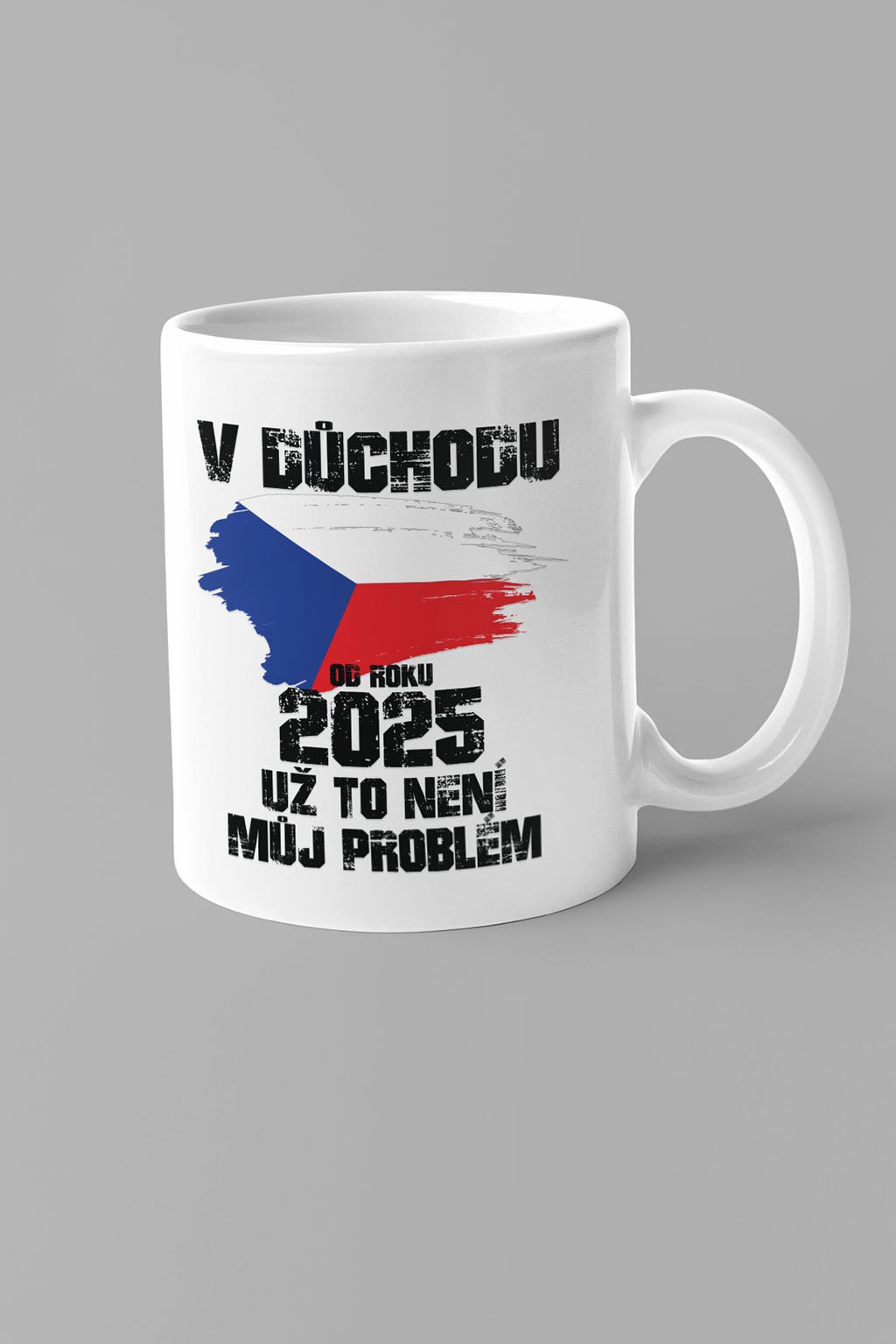 Bílý keramický hrnek, na kterém je nápis "V DŮCHODU OD ROKU.... UŽ TO NENÍ MŮJ PROBLÉM". Tenhle hrnek rozveselí každého, kdo se chystá užívat si zaslouženého odpočinku. Perfektní k oslavě odchodu do důchodu nebo jen tak pro radost.