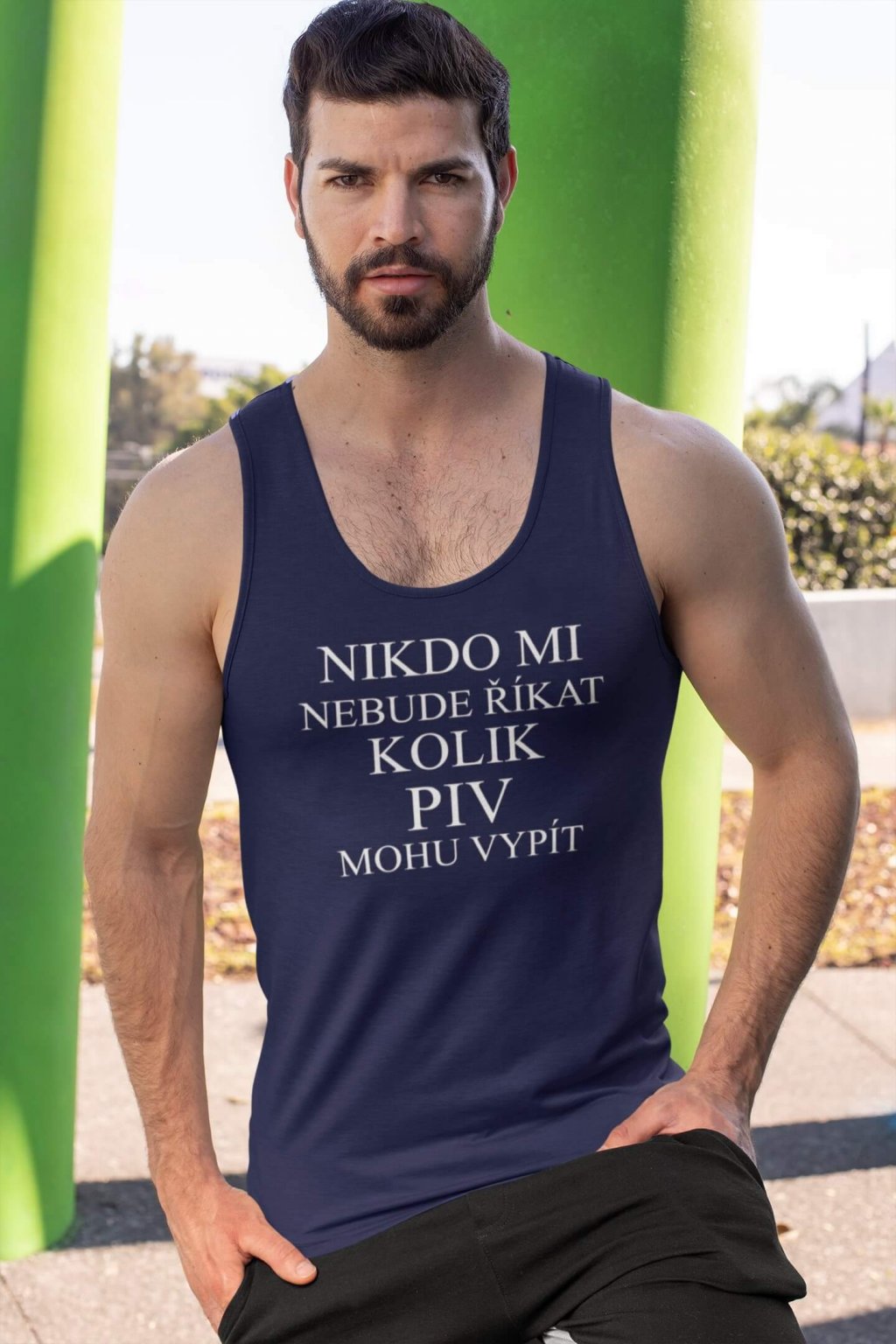 Pánské bavlněné tílko s vtipným motivem. Na tílku je nápis "NIKDO MI NEBUDE ŘÍKAT KOLIK PIV MOHU VYPÍT"