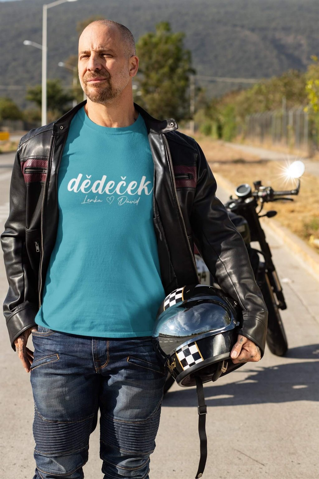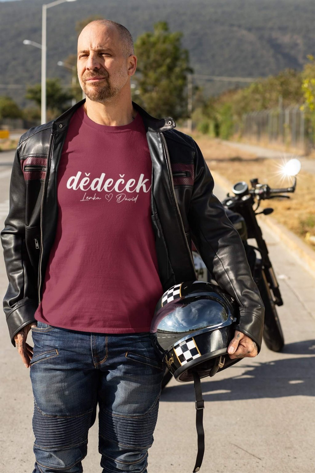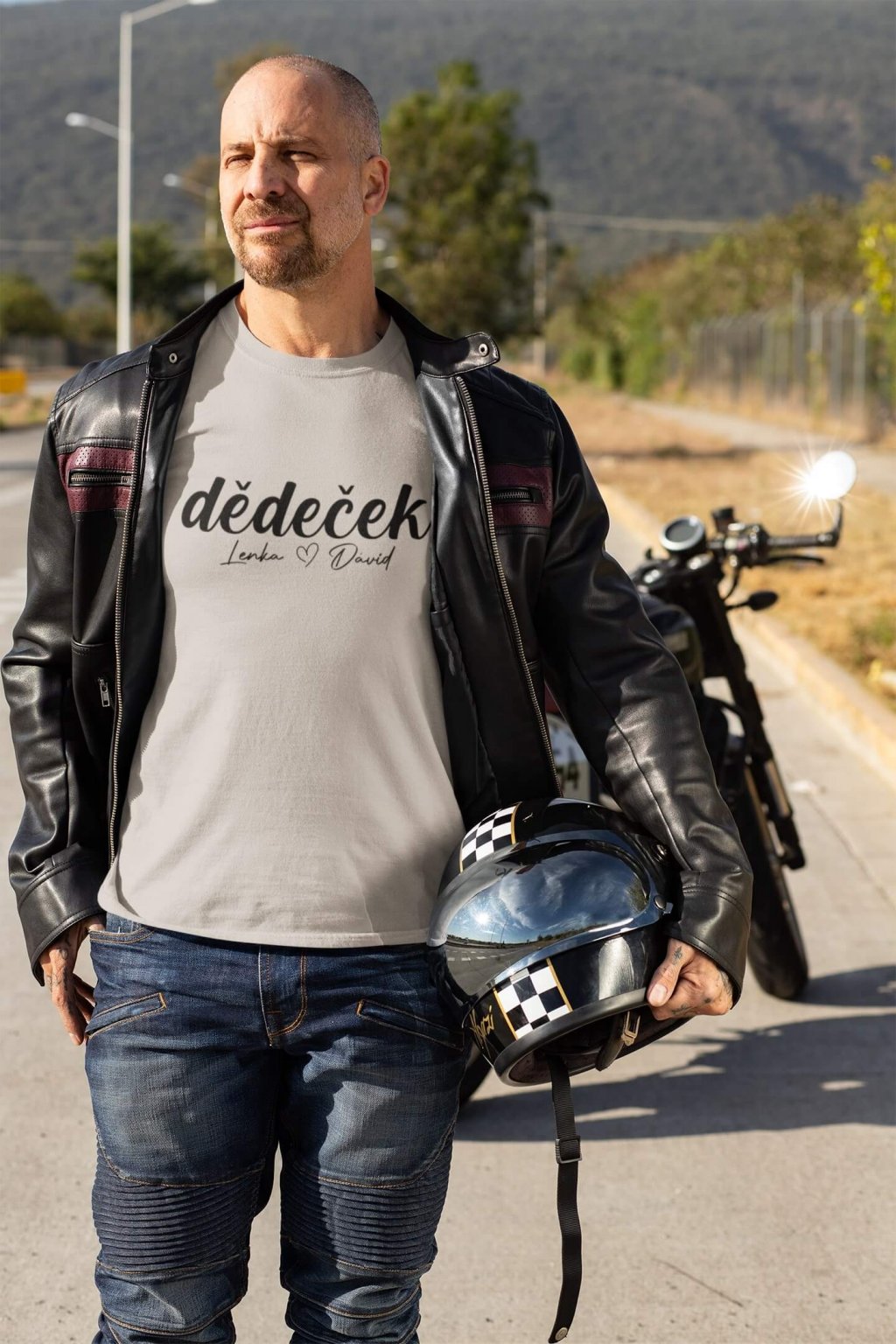 Pánské bavlněné triko pro každého dědu. Na triku je nápis "dědeček" a pod ním jména dětí. Jména dětí napište do poznámky k produktu!