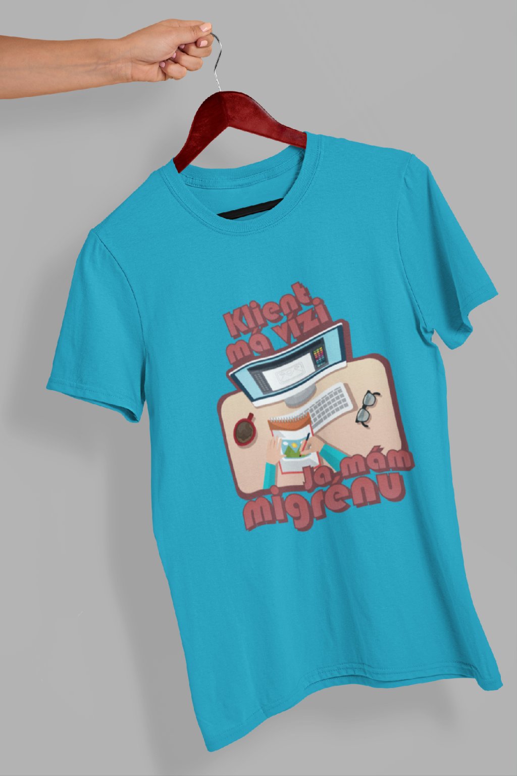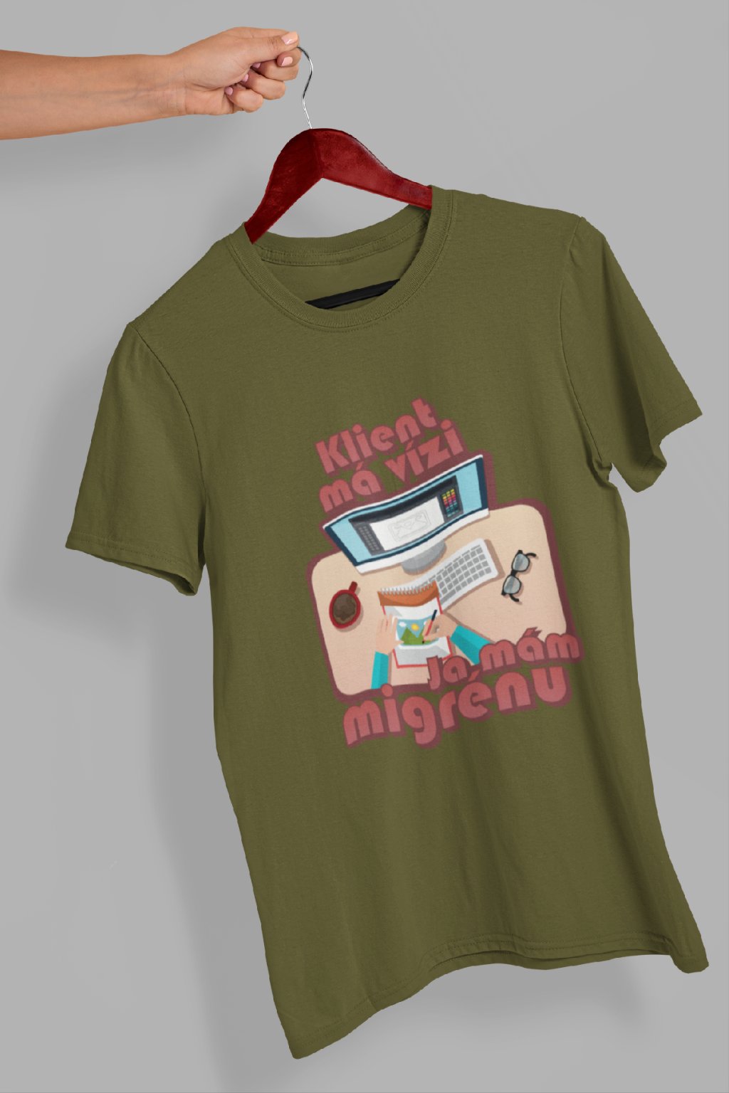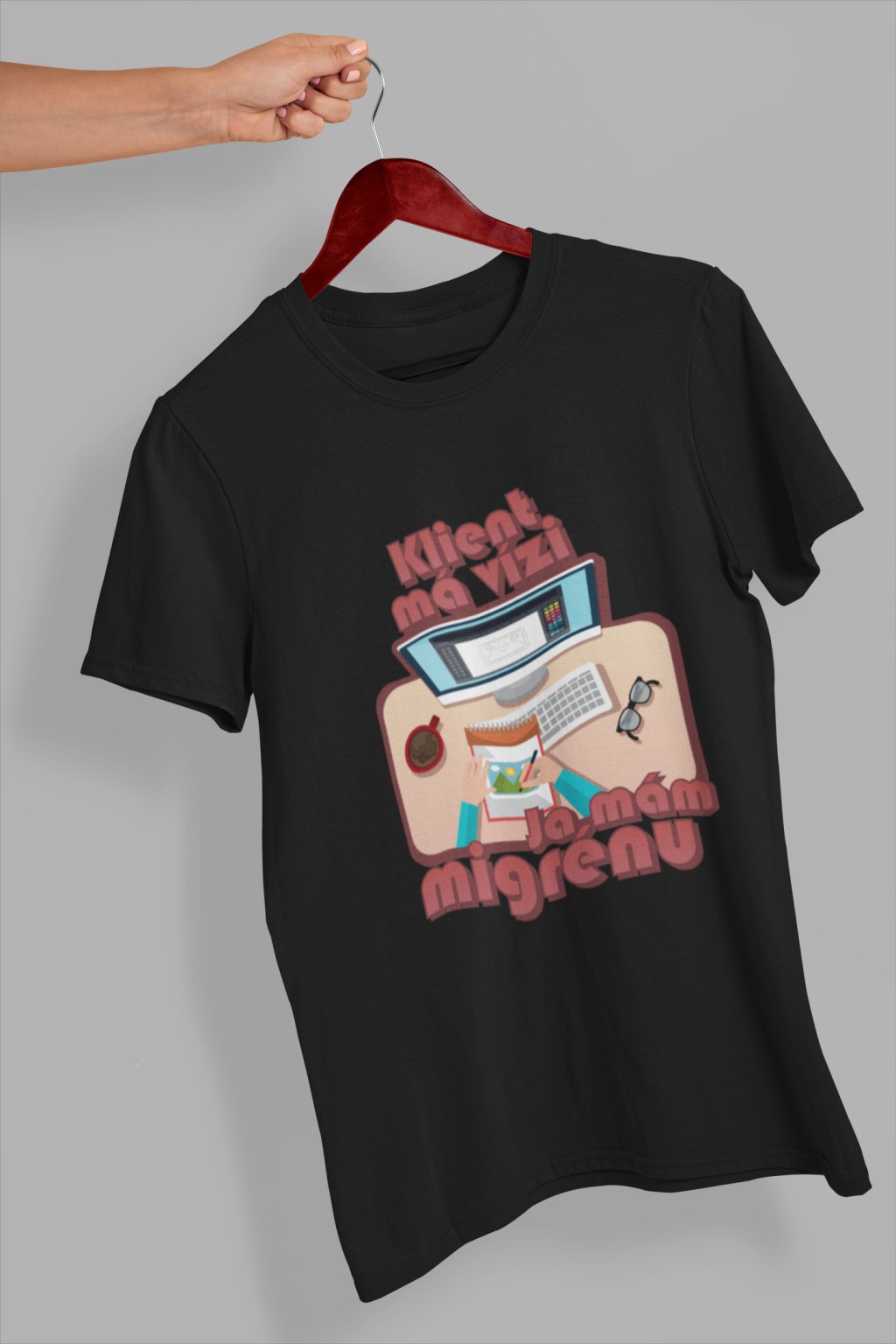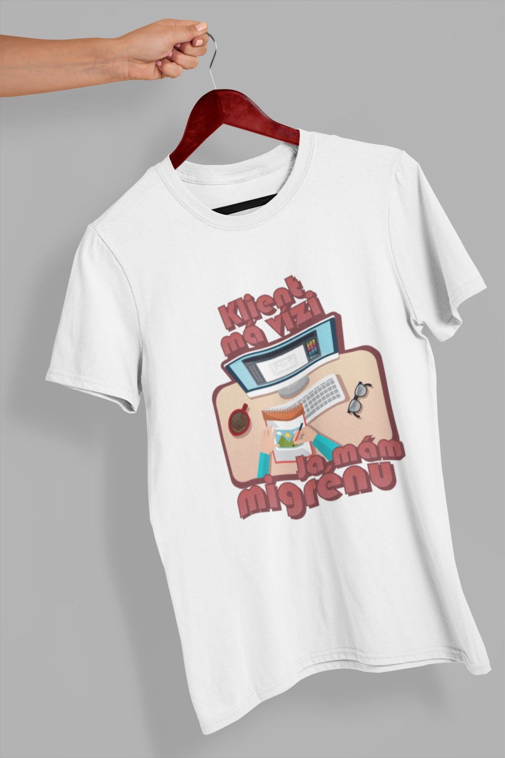Vtipné triko pro každého grafika! Originální potisk s nápisem "Klient má vizi, já mám migrénu.."