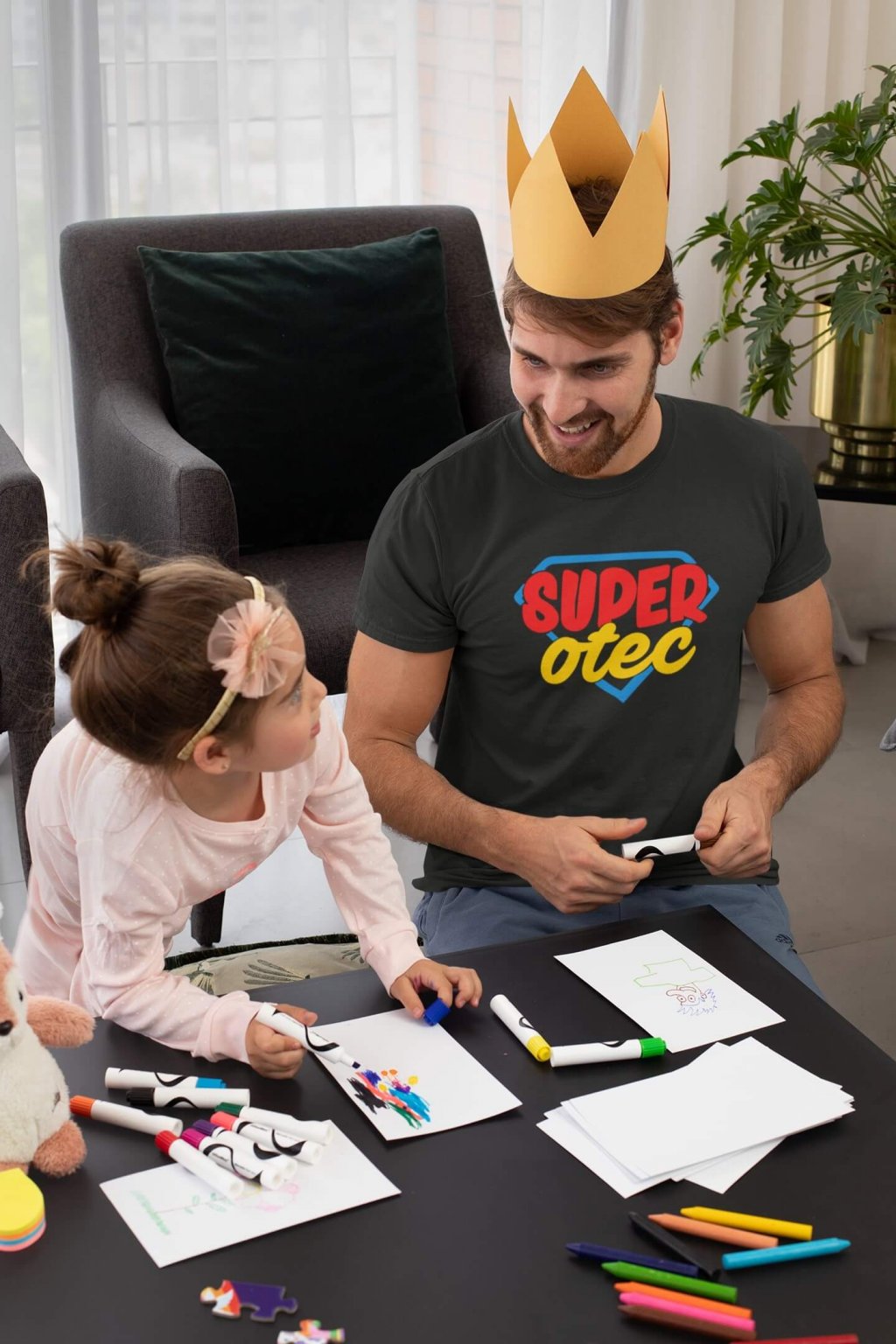 Pánské bavlněné tričko s krátkým rukávem, na kterém je nápis "SUPER OTEC."
