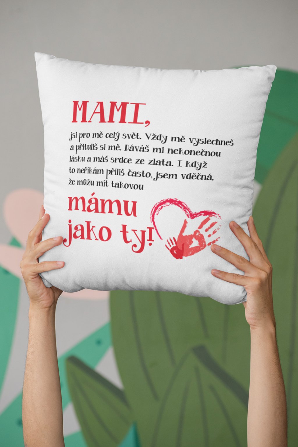 Polštář, na kterém je upřímný nápis, kterým potěšíte svoji maminku.