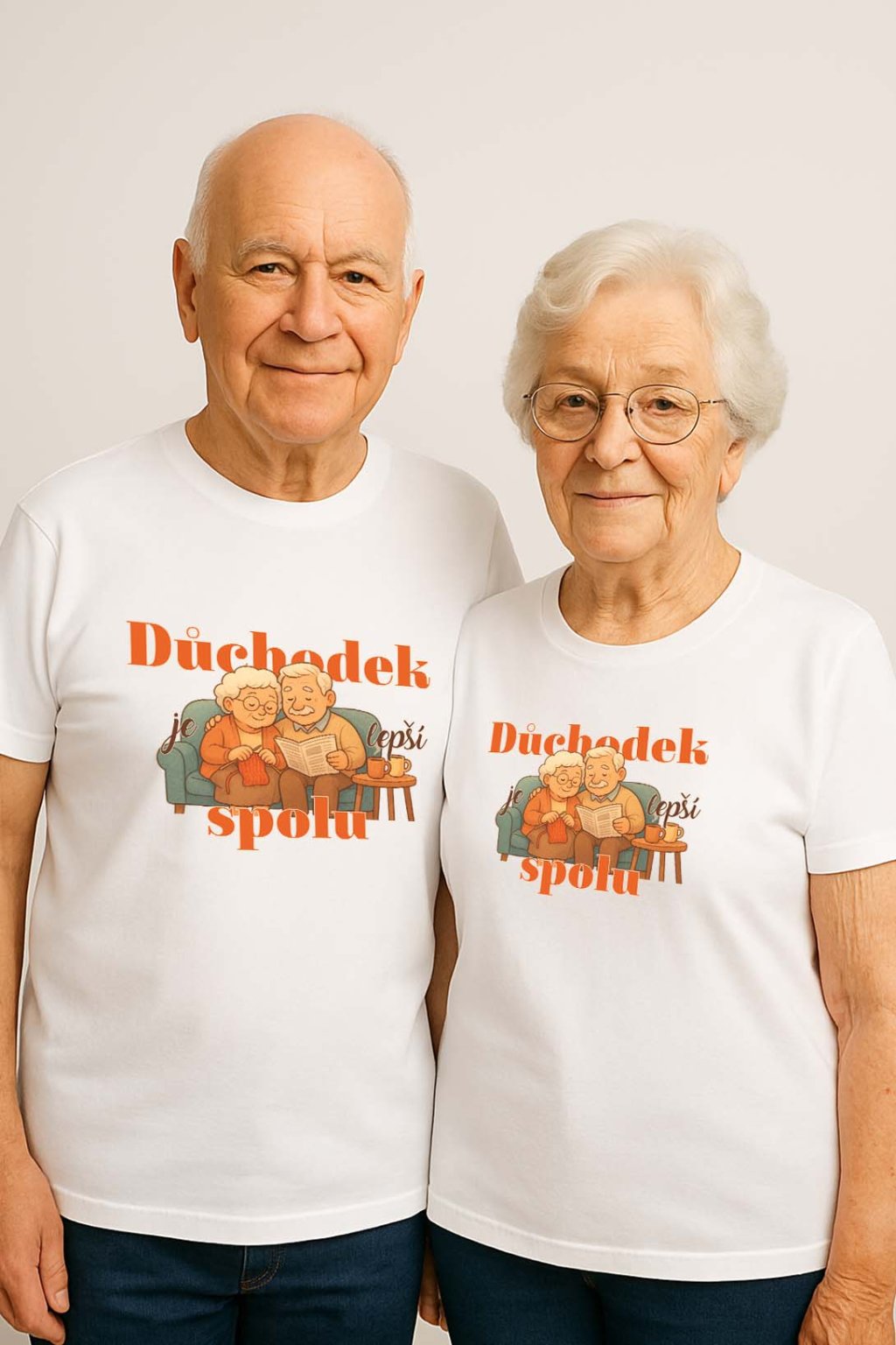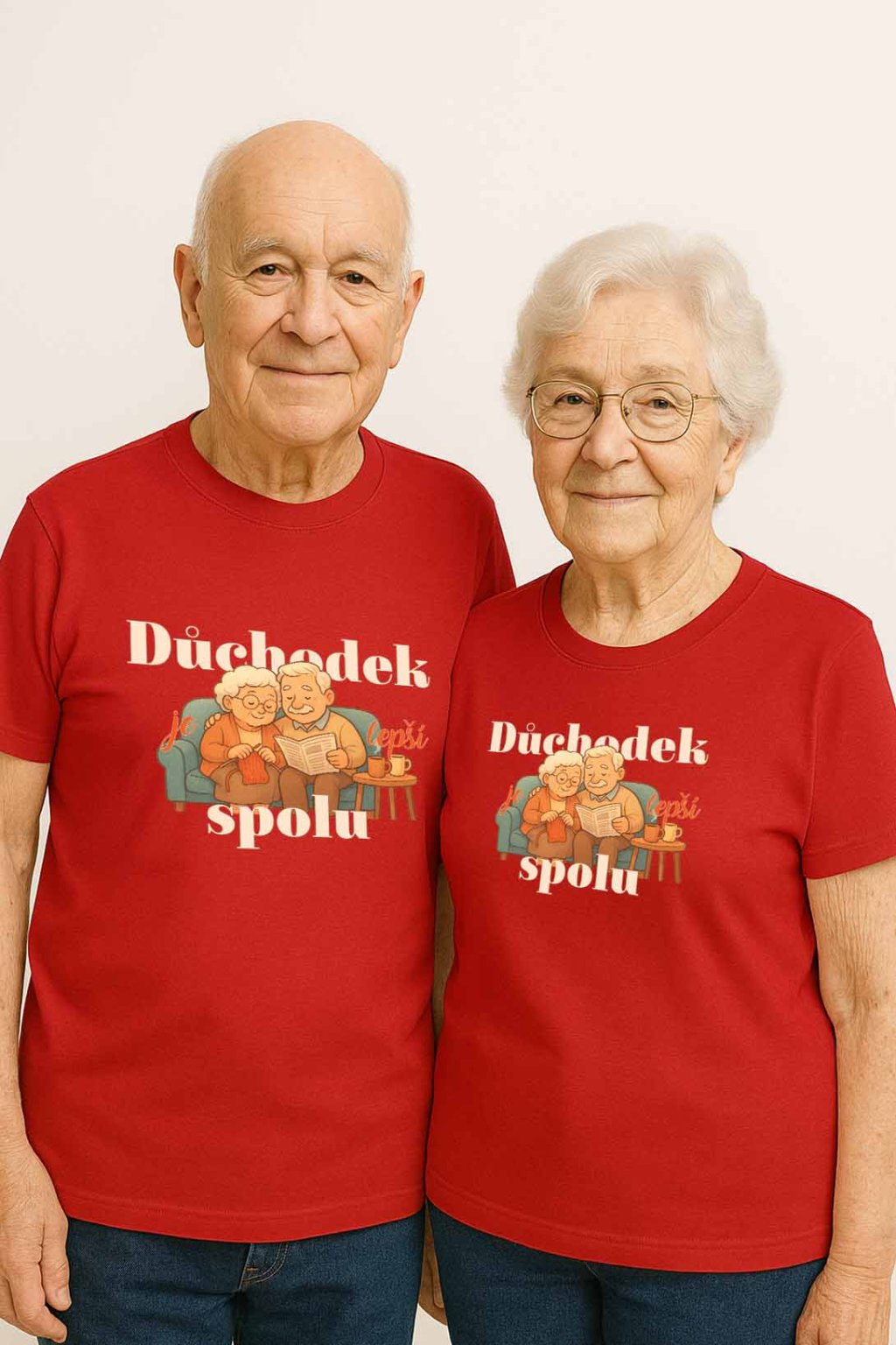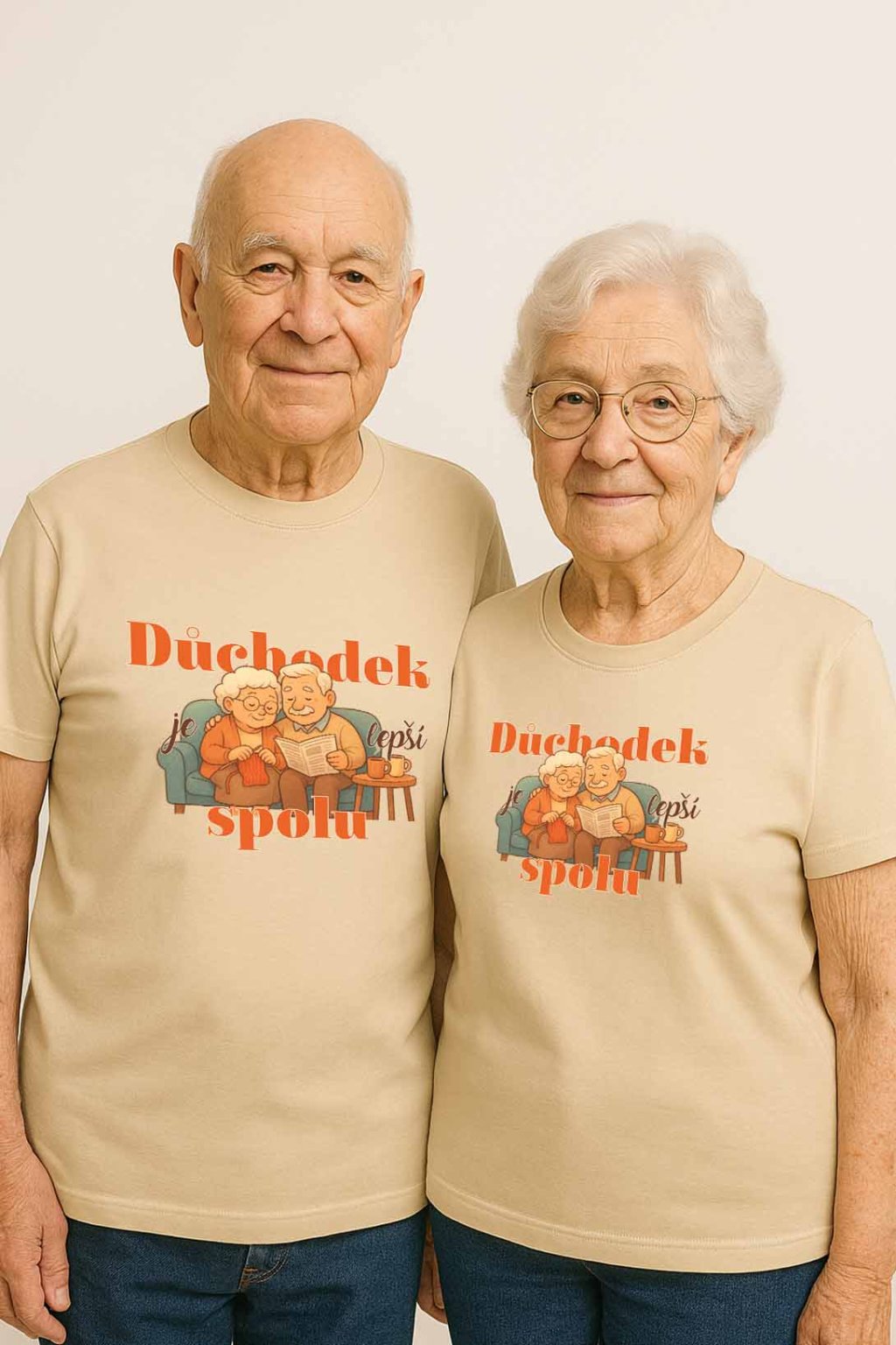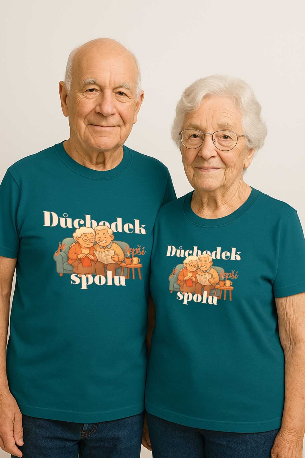 Triko „Důchodek je lepší s tebou“ je ideální volbou pro ty, kteří chtějí potěšit své prarodiče a připomenout jim, jak krásné je prožívat společný čas ruku v ruce. Na přední straně se nachází roztomilá grafika usmátého dědečka a babičky, kteří symbolizují lásku, harmonii a radost ze společného života. Nápis doplňuje celý motiv a působí jako teplý vzkaz, který zahřeje u srdce.