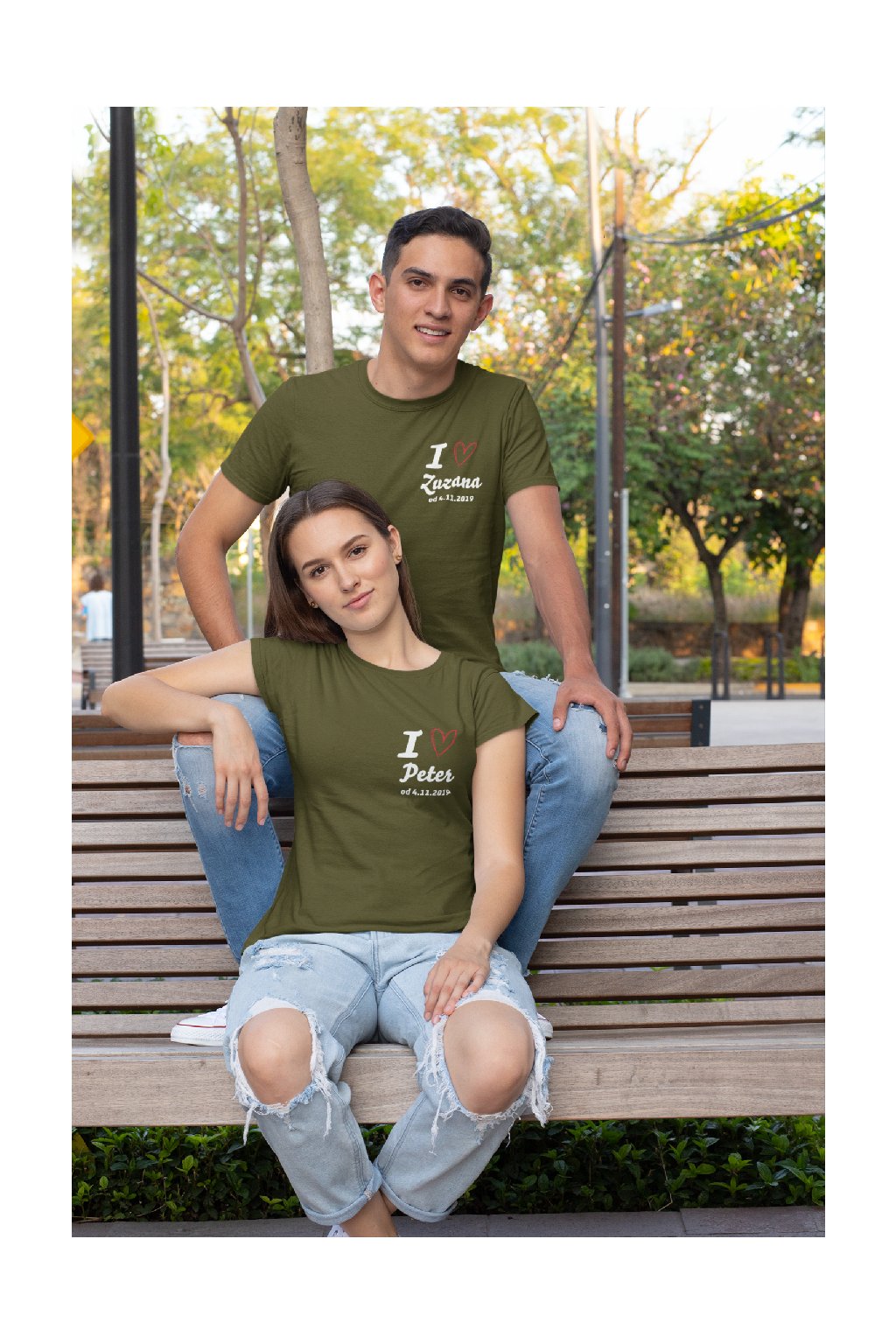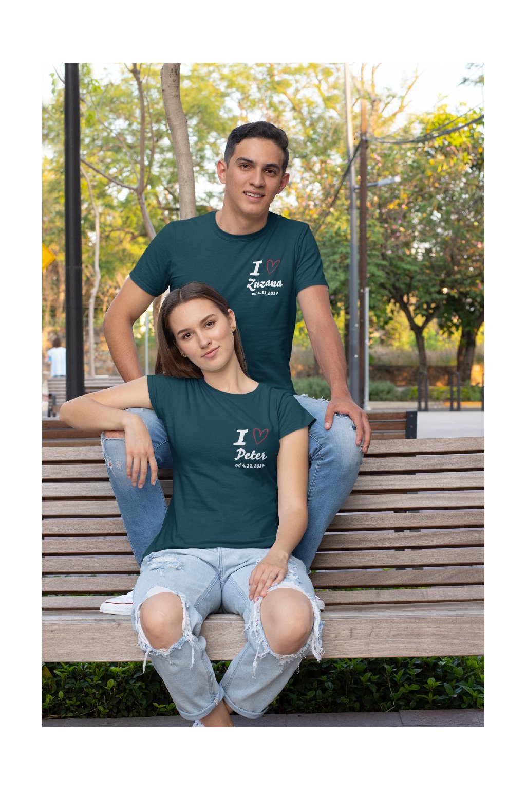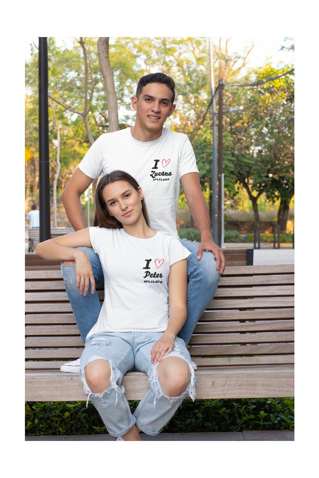 Trička pro páry I <3 personalizovatelný text s dátumom