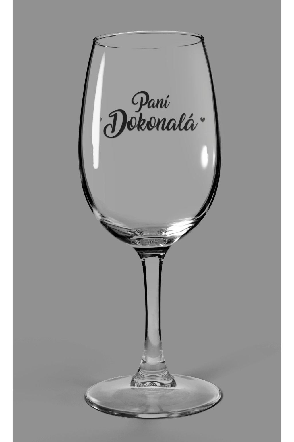 Elegantní vínový pohár s nápisem "Paní Dokonalá"